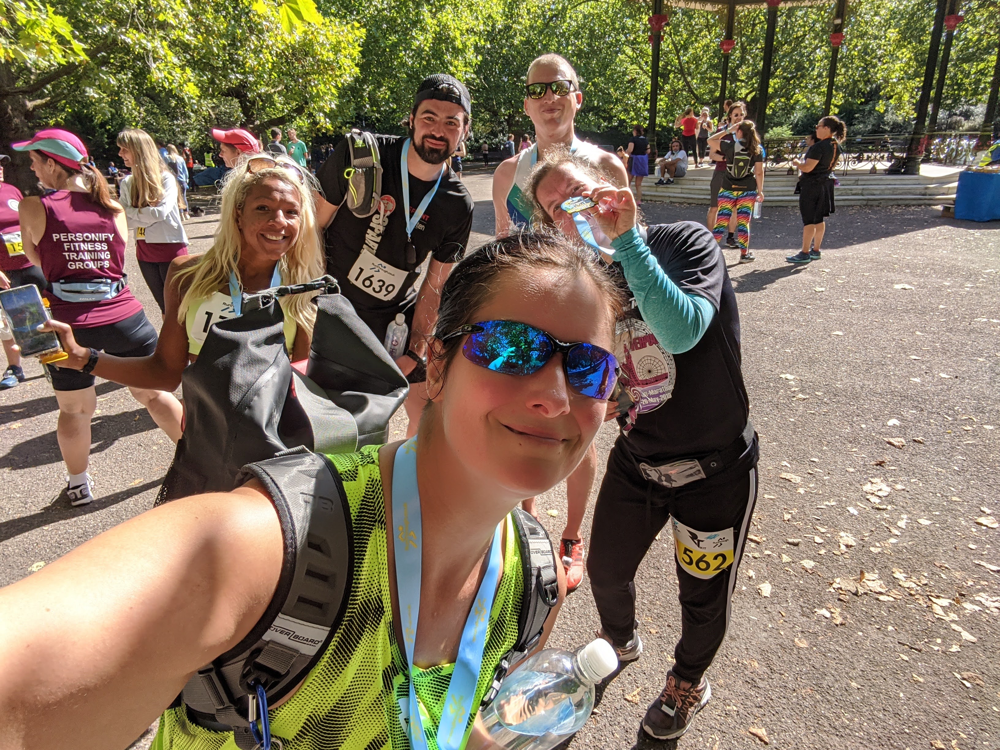 My perspective on this is that we can’t wait until the risk is completely gone before we get on with our lives, because the risk may never be completely gone and even if it is there are still a billion other risks out there and we don’t just cancel everything because we might end up dying. I hardly ever see cases of coronavirus at work now, and I don’t personally know anyone who has been sick with it since May. To me this has relegated coronavirus into just another thing we need to be careful about, rather than something we need to devote our entire lives into avoiding. I was therefore over the fucking moon that the race at Battersea went ahead. I loved every minute of it, from greeting my friends by the bandstand, to finding the secret unofficial bag drop, to plucking my medal off a coronaproofed table. RunThrough have made a few changes – there’s now four separate races (10k whippets, 10k snails, 5k whippets, 5k snails) and instead of a mass start people are set off in groups of four in some kind of vague semblance of pace order. You pick up your own water at the water station, the marshals’ smiling faces are obscured by masks (but you can still tell they are smiling) and some of the inspiring quotes have been replaced with solemn instructions like “no spitting” “keep off the pavement” etc. I hate inspiring quotes anyway so I think this is all for the best.