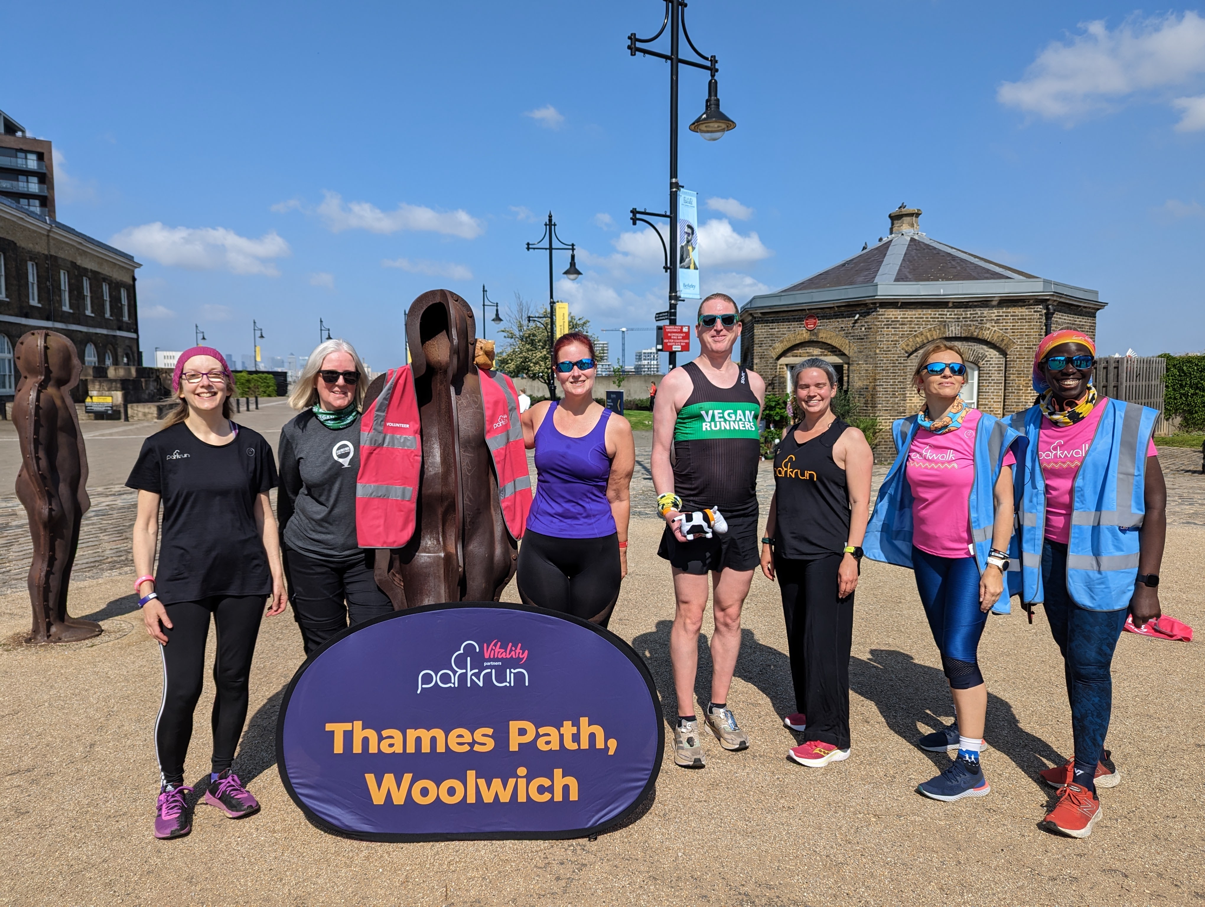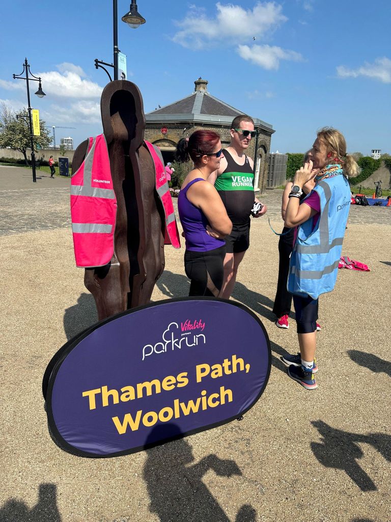 The parkrunners meet by the finish line in James Clavell Square, the home of a bunch of statues wearing hi vis (I wonder how long until the novelty of dressing the statues wears off or someone leaves a hi vis there all week?) and then walk what seemed like an awfully long way to the start point, which I imagine could catch latecomers out. I am a stickler for punctuality so this is a good thing in my book. Presumably if they started and finished in the same place there would be no way to accommodate the Curly Wurly/Walnut Whip/Pyramid and this would be a boring post. The run gets off to quite a slow start due to congestion on what would other be a fast, flat, tarmac path, then after about a kilometer or so changes to a pleasant reasonably well maintained trail path similar to the long stretch of Thames Path in West London. Then it takes a right into Gallions Reach Park, along one of those hard packed sandy stuff paths (do these have a proper name?) and a magnificent view of the Curly Wurly. As I reached the path, the fastest runners were already reaching the bottom of the mound. I shall report my findings on said lump shortly. After retracing your steps back down the mound, you run back to the start on a different path which is parallel to the one you took on the way out and mainly comprised of paving stones which have slightly more arse over tit potential than the tarmac but were generally in good repair. From here it’s just a steady plod back to the hi vis clad statues, with a vista of the Thames an a smell reminiscent of a day at the seaside. My time was 38:24. My excuses for not being faster this week are: 1) gave blood on Thursday, head still feeling a bit curly wurly 2) too busy mentally composing blog post to concentrate on pace 3) six-inch patch of grass on first km 4) will probably be doing this one regularly, so best not to get unbeatable PB on first attempt.